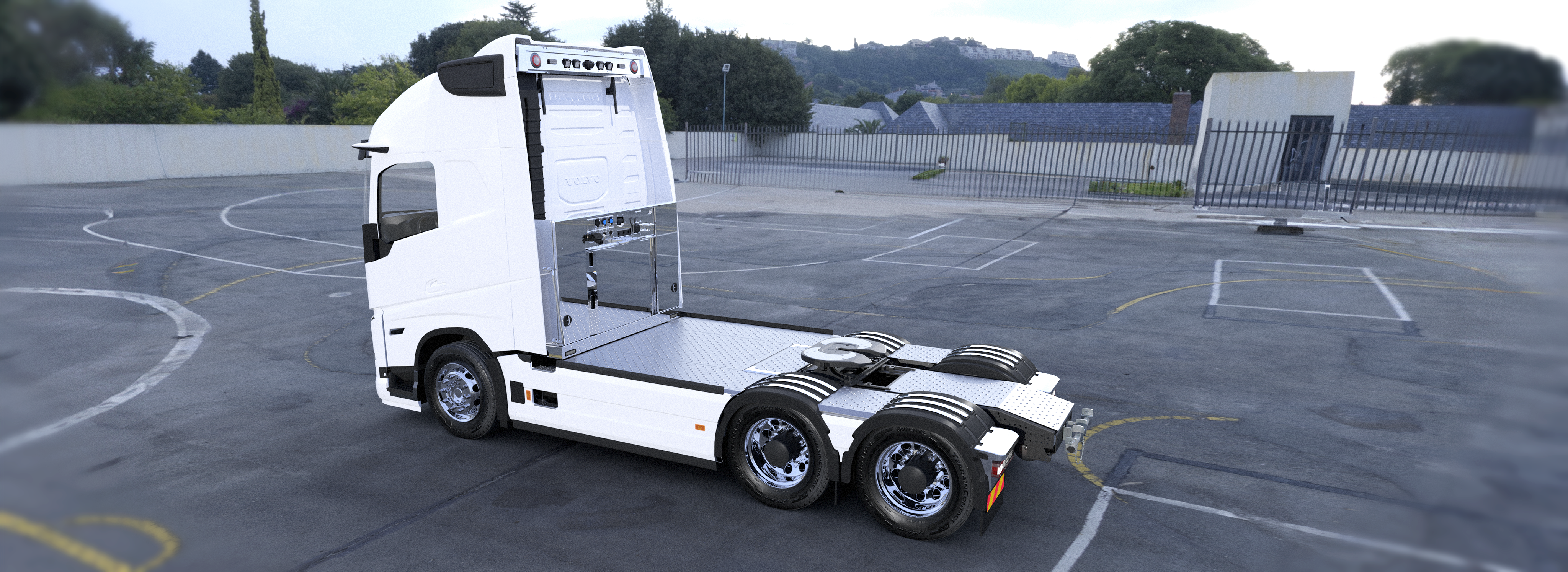 I vår monter på Elmia Lastbil 2024 kunde du se denna dragbil fullproppad med praktiska och stilrena tillbehör från oss. Förvaring uppe på bilen, i ApTur M och bakom Volvos originalsidokjolar.