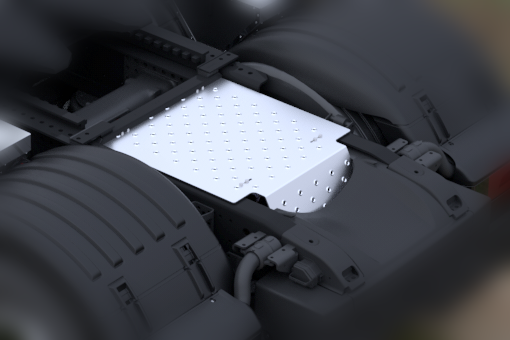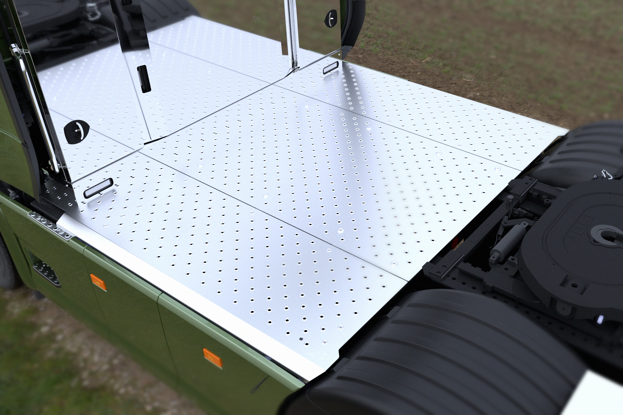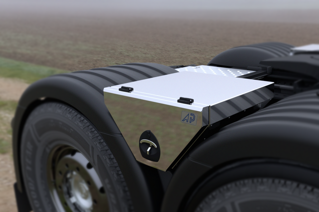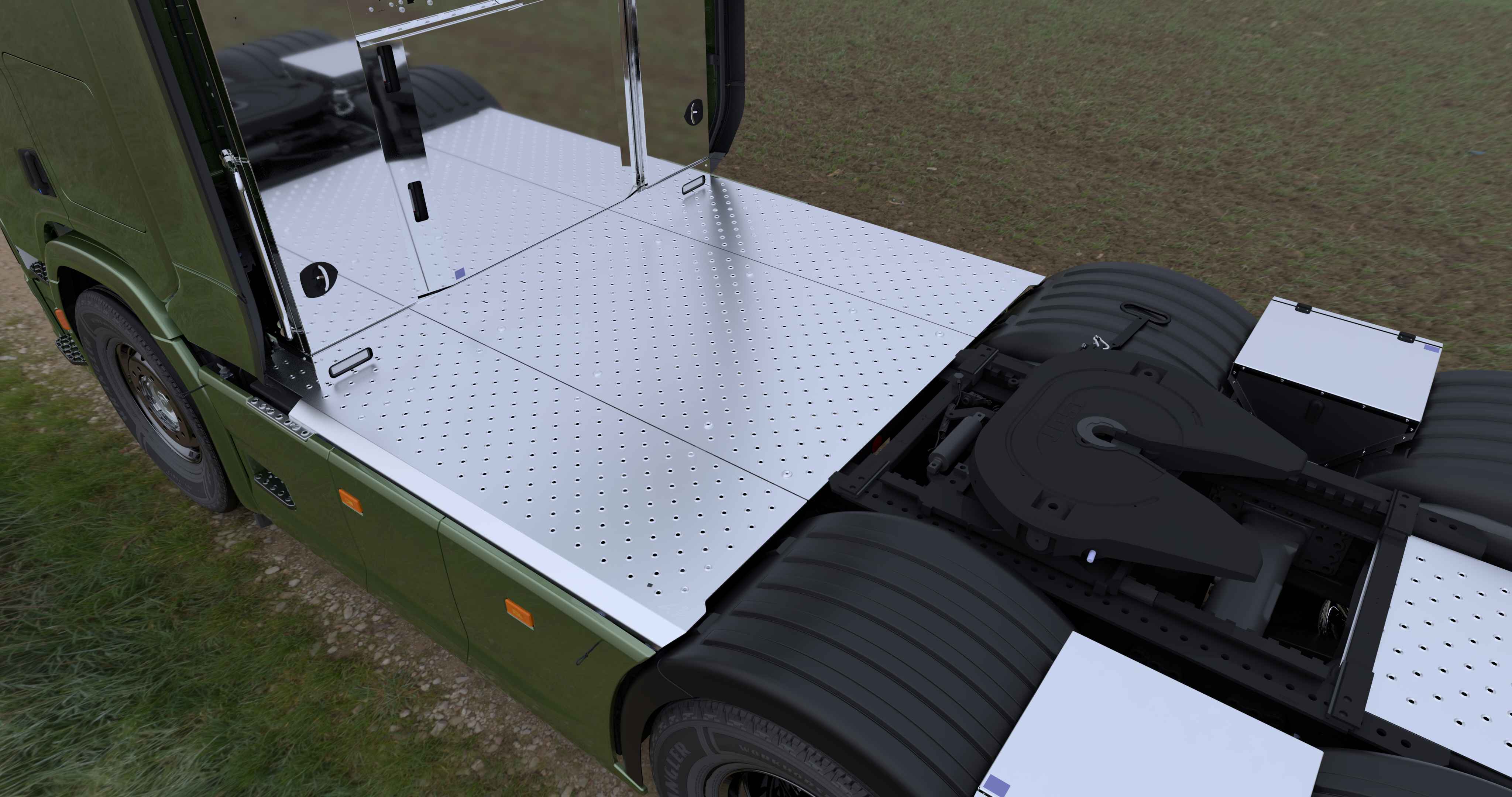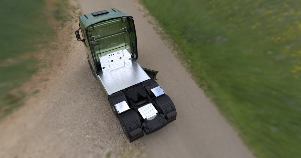 Förvara uppe på bilen och bakom Scanias originalsidokjolar.