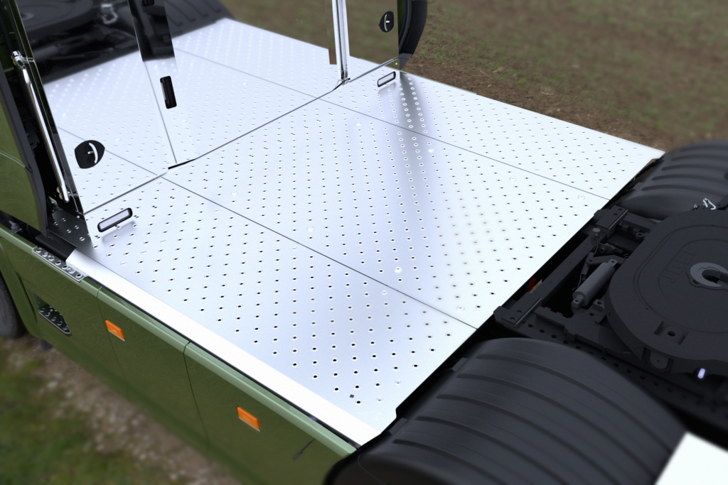 Heltäckande gångbord av 5mm marin-aluminium, med kragade hål som ger gott halkskydd. Vår unika måsvinge-öppning ger enkel åtkomst för tankning, utan onödiga urtag.