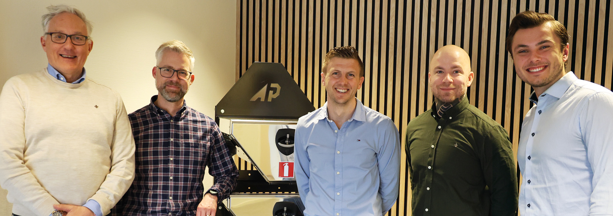 Above: Jan-Krister Johansson and Patrik Ohrberg of Alf Pettersson AB are flanked by representatives from Canmer Data AB, Anders Synneby on the left and Jesper Andersson and Rickard Andersson on the right.