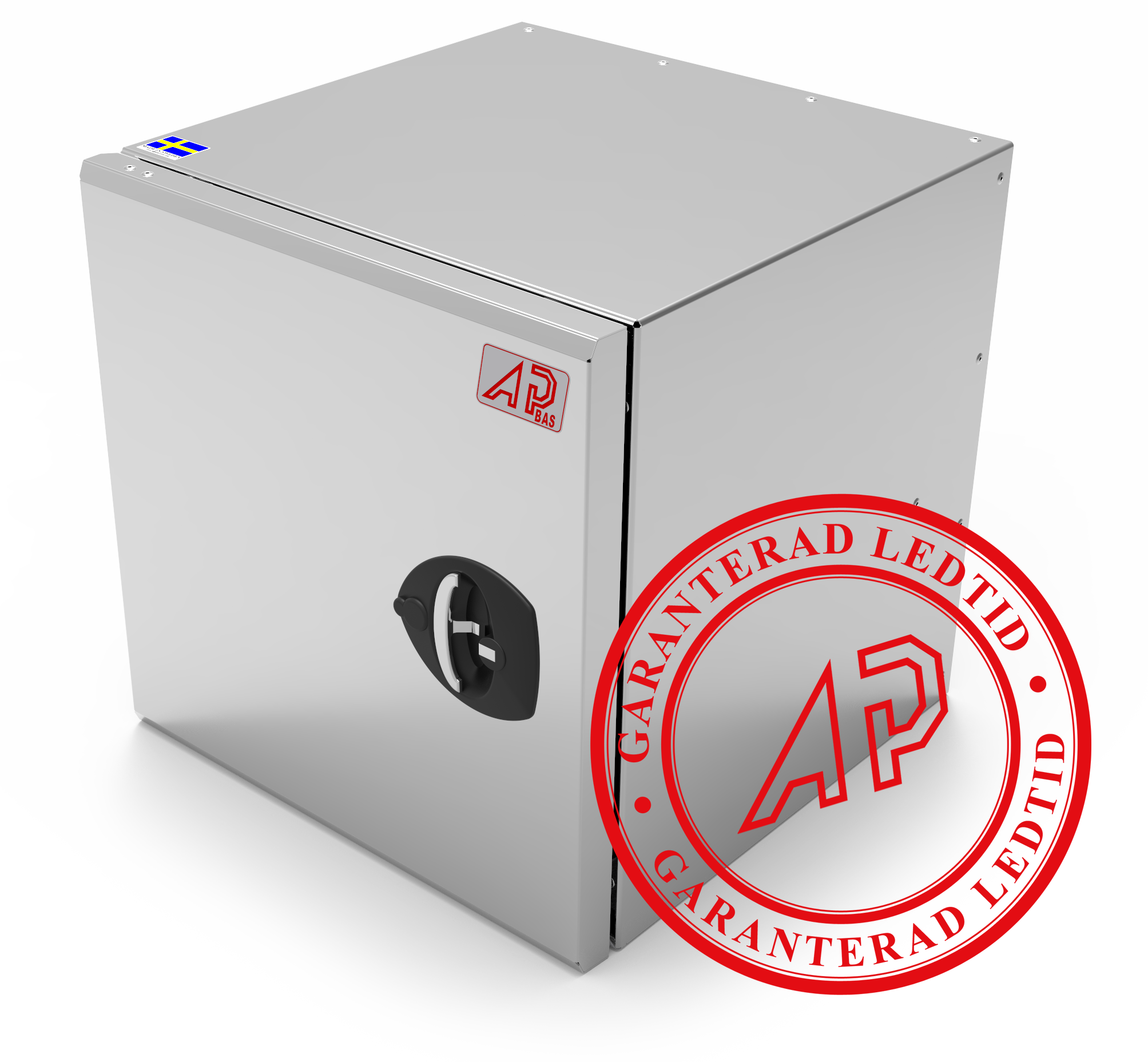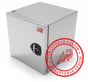 Mått: 500x500x500mm (LxHxD). Gångjärn vänster. Med Vectorlås och luftventil. Tillverkad i 1,25mm rostfritt stål.
