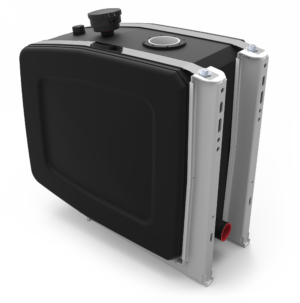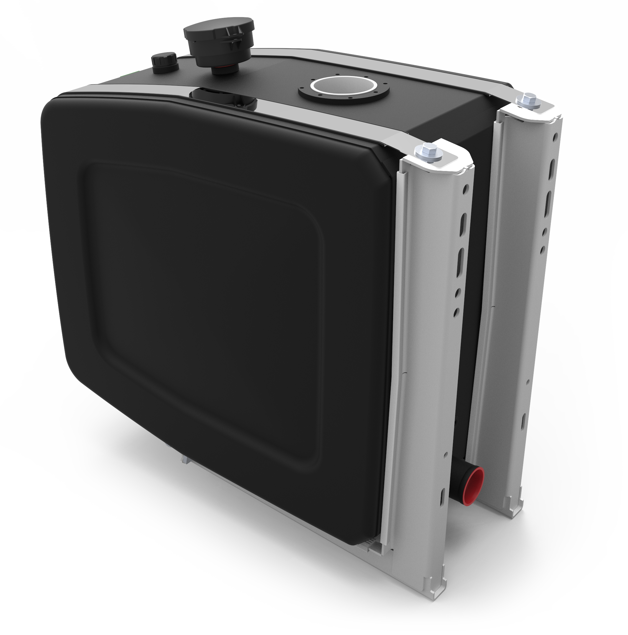 Svartlackerad tank med bruttovolym 164 L, med komplett monteringssats och luftfilter. Liten fläns på anslutning för hydrauloljefilter.