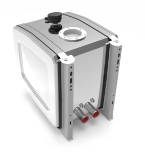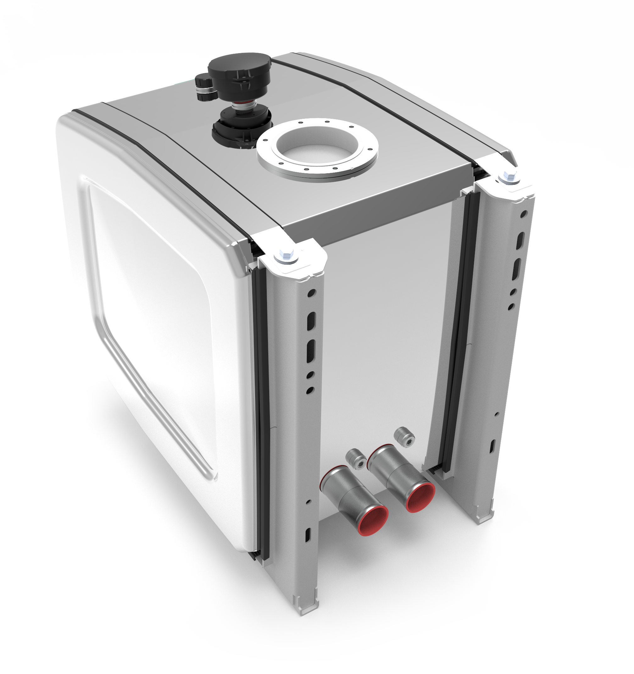 Rostfri blankpolerad tank med bruttovolym 227 L, med komplett monteringssats och luftfilter. Stor fläns på anslutning för hydrauloljefilter.