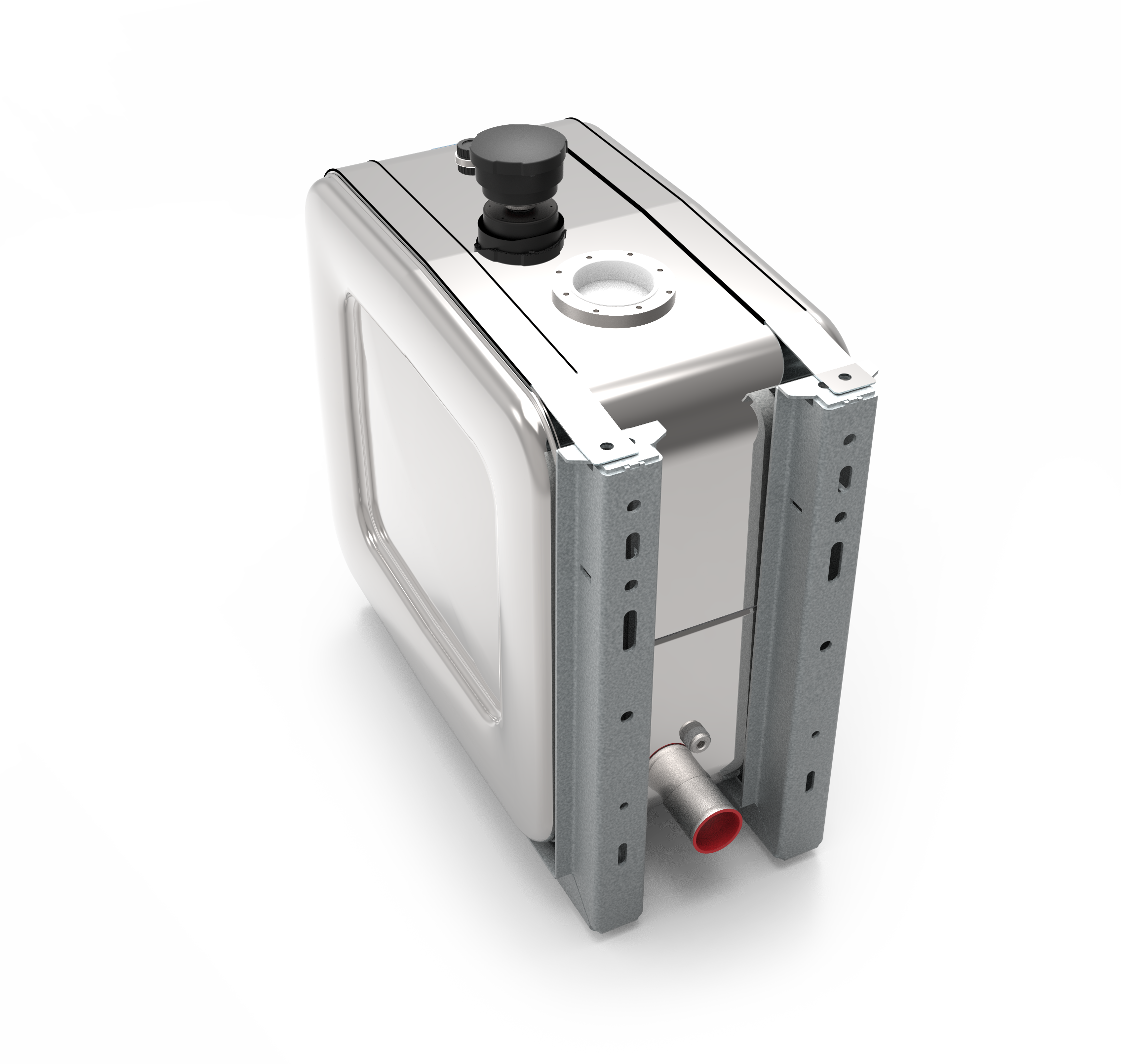 Rostfri blankpolerad tank med bruttovolym 168 L, med komplett monteringssats och luftfilter. Liten fläns på anslutning för hydrauloljefilter.